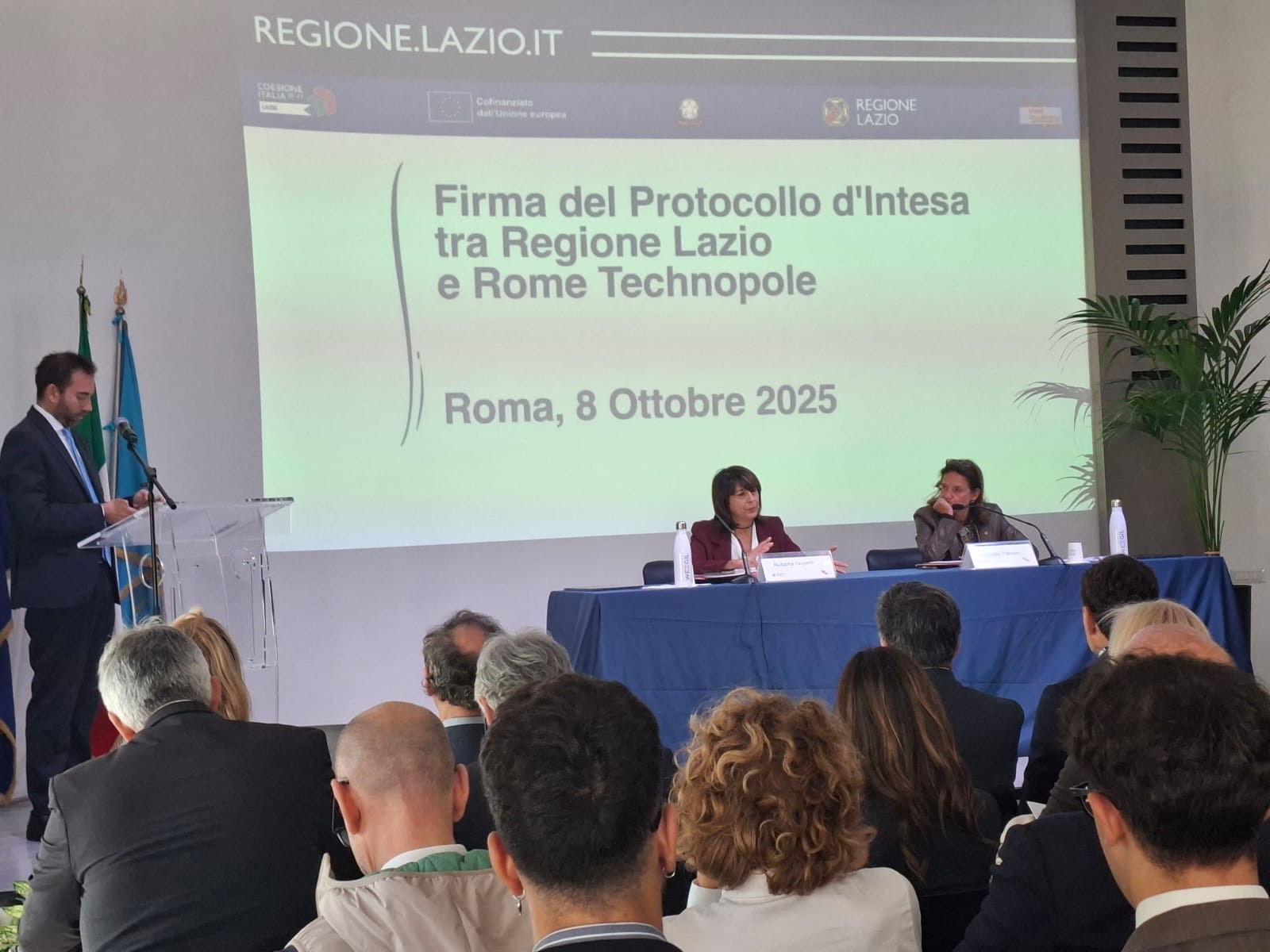 A firmare il Protocollo d’intesa Roberta Angelilli, vicepresidente della Regione Lazio e Assessore a Sviluppo economico, Commercio, Artigianato, Industria e Internazionalizzazione della Regione Lazio e Antonella Polimeni, presidente Fondazione Rome Technopole e Rettrice Sapienza Università di Roma.
