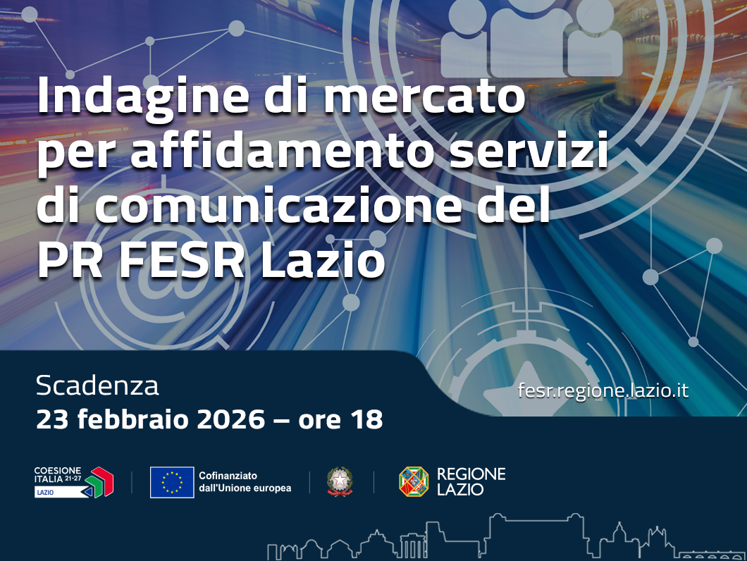 Gli operatori economici che si sono candidati entro il 26 febbraio 2026 sono stati selezionati ed è stato costituito ed approvato l’Elenco degli Operatori economici per servizi di Comunicazione della Politica di Coesione, da consultare per l’acquisizione nell’ambito del PR Lazio FESR 2021-2027.