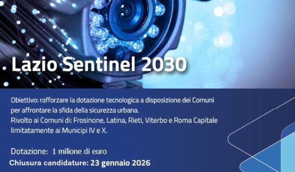 È stata pubblicata oggi la Manifestazione d’Interesse Lazio Sentinel 2030, di cui si era data la pre informazione già a fine ottobre. Rivolta ai Comuni …